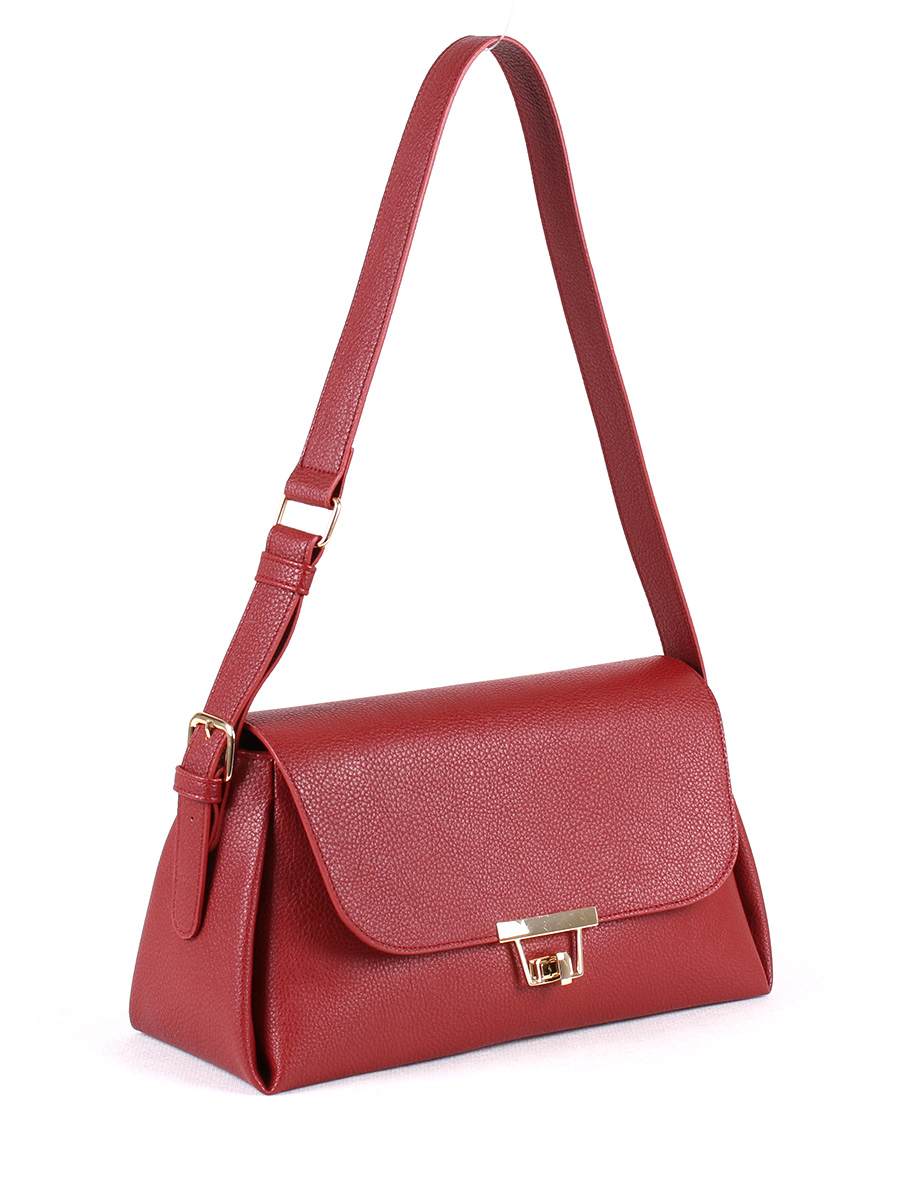 Сумка женская на плечо с одним отделением под клапаном. Закрывается на замок-вертушок. На задней стенке - карман на молнии. Внутри - карман на молнии, открытый карман для мобильного телефона. Высота несъёмной ручки 33 см.