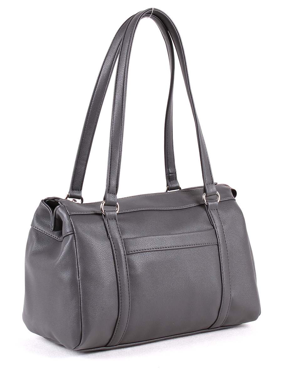 Сумка женская с одним отделением на молнии.  На передней стенке - карман на магнитной кнопке, на задней - карман на молнии. Внури - перегородка и карман на молнии, два открытых кармашка для мелочей. Две ручки высотой 25 см.