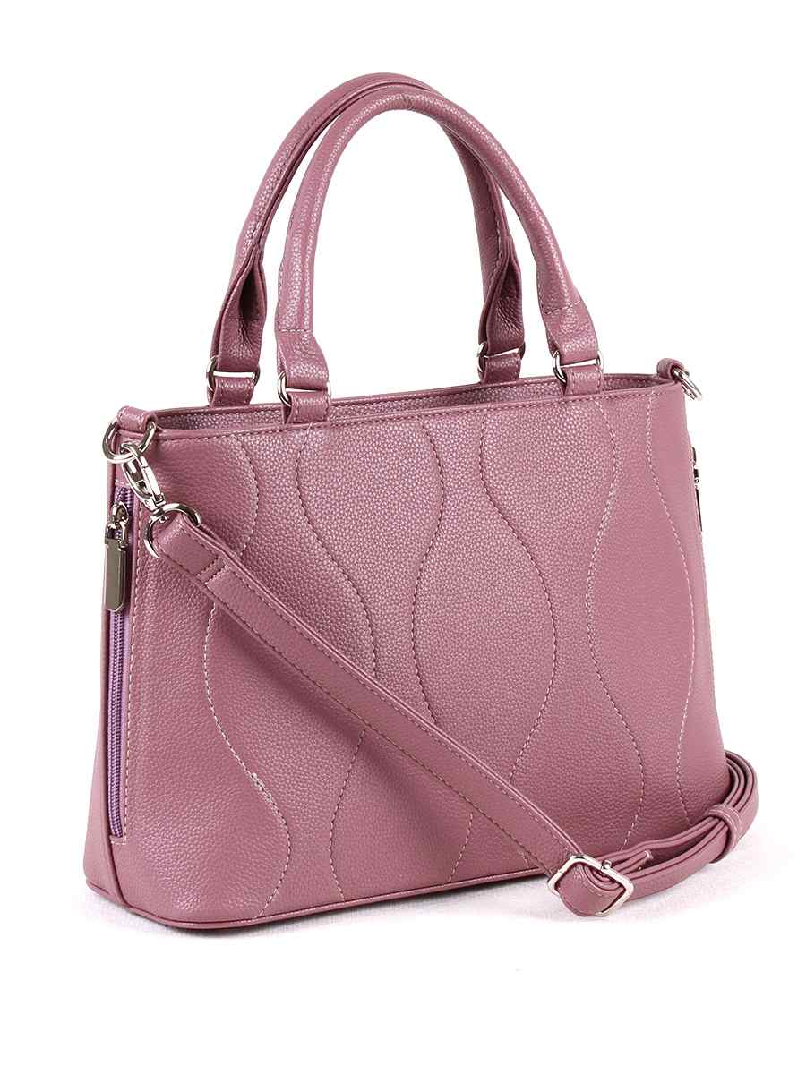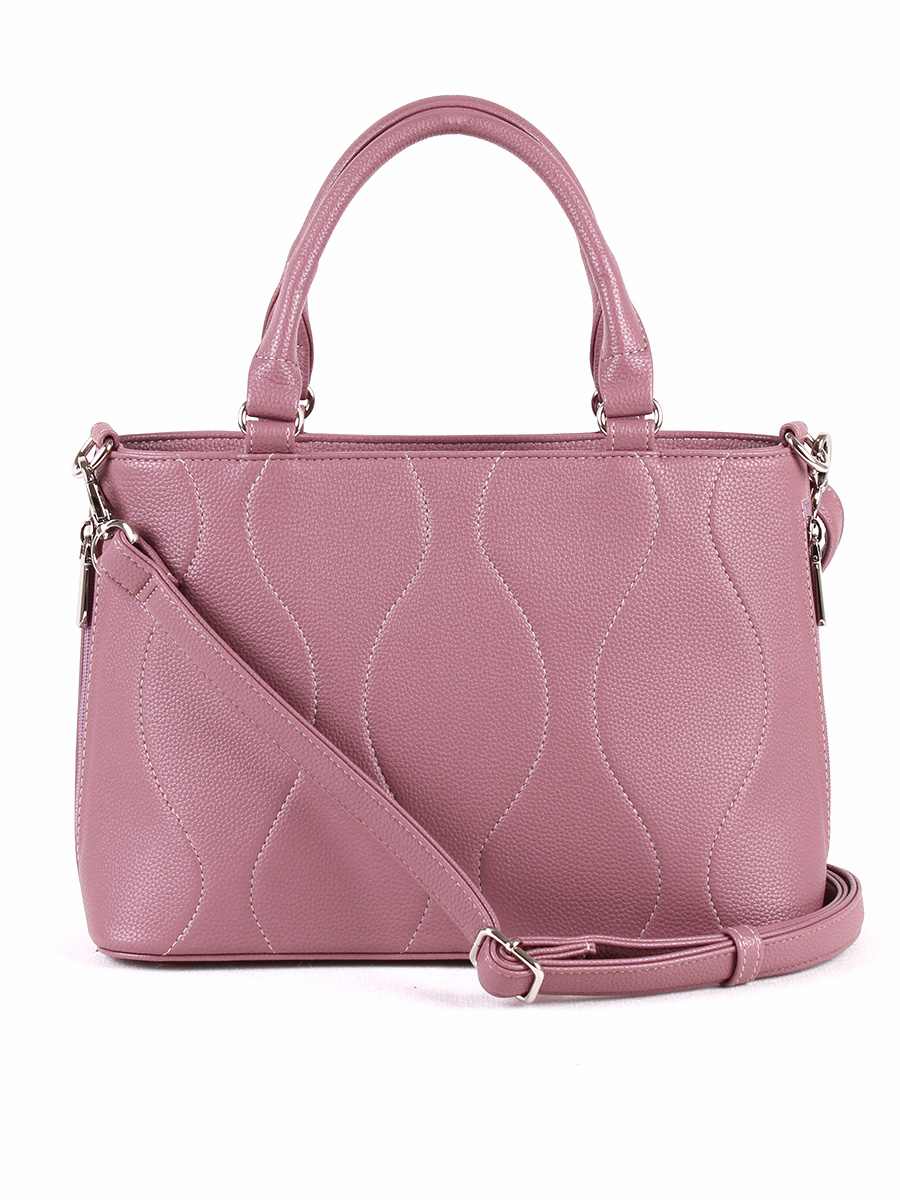 Сумка женская с одним отделением на молнии. Передня стенка украшена декоративной стёжкой. На задней стенке, внутри и снаружи - карманы на молнии. Внутри сумки - два открытых кармашка для мелочей и карман на молнии для документов. Две ручки высотой 13 см. Сёмный регулируемый ремень.