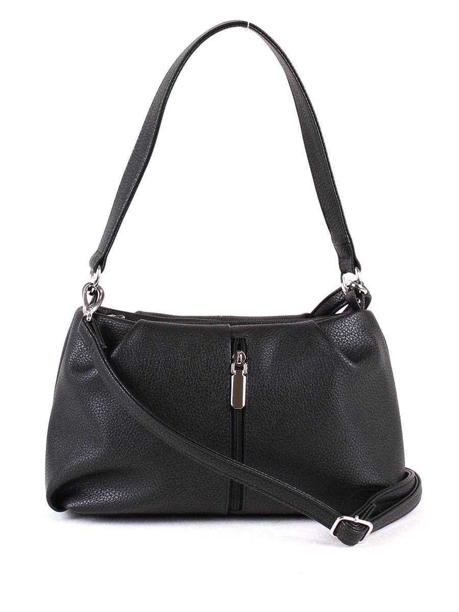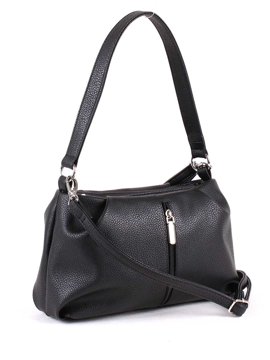 Сумка женская с одним отделением на молнии. На передней стенке - вертикальный кармашек на молнии. Внутри - карман на молнии, открытый карман для мелочей. Одна ручка высотой 24 см. Съёмный регулируемый ремень.
