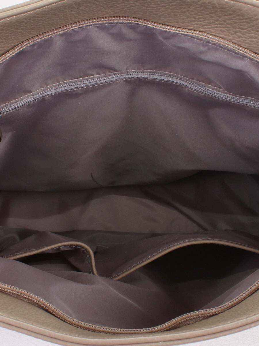 Сумка с одним отделением на молнии, внутри карманы. На задней стенке карман на молнии. Высота ручки 25см.