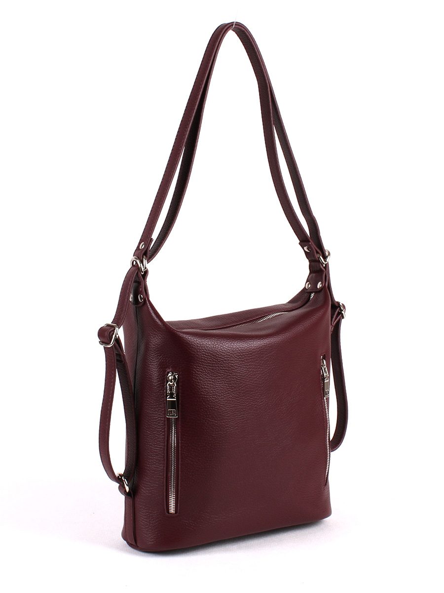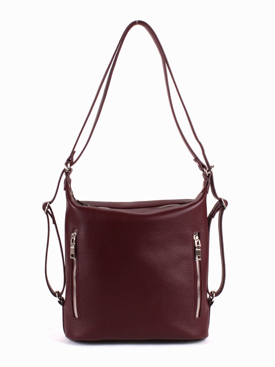 Женская сумка-рюкзак из натуральной кожи.  На передней стенке - два вертикальный кармана на молнии, На задней стенке - карман на молнии.Внутрии одни открытый карман и карман на молнии.