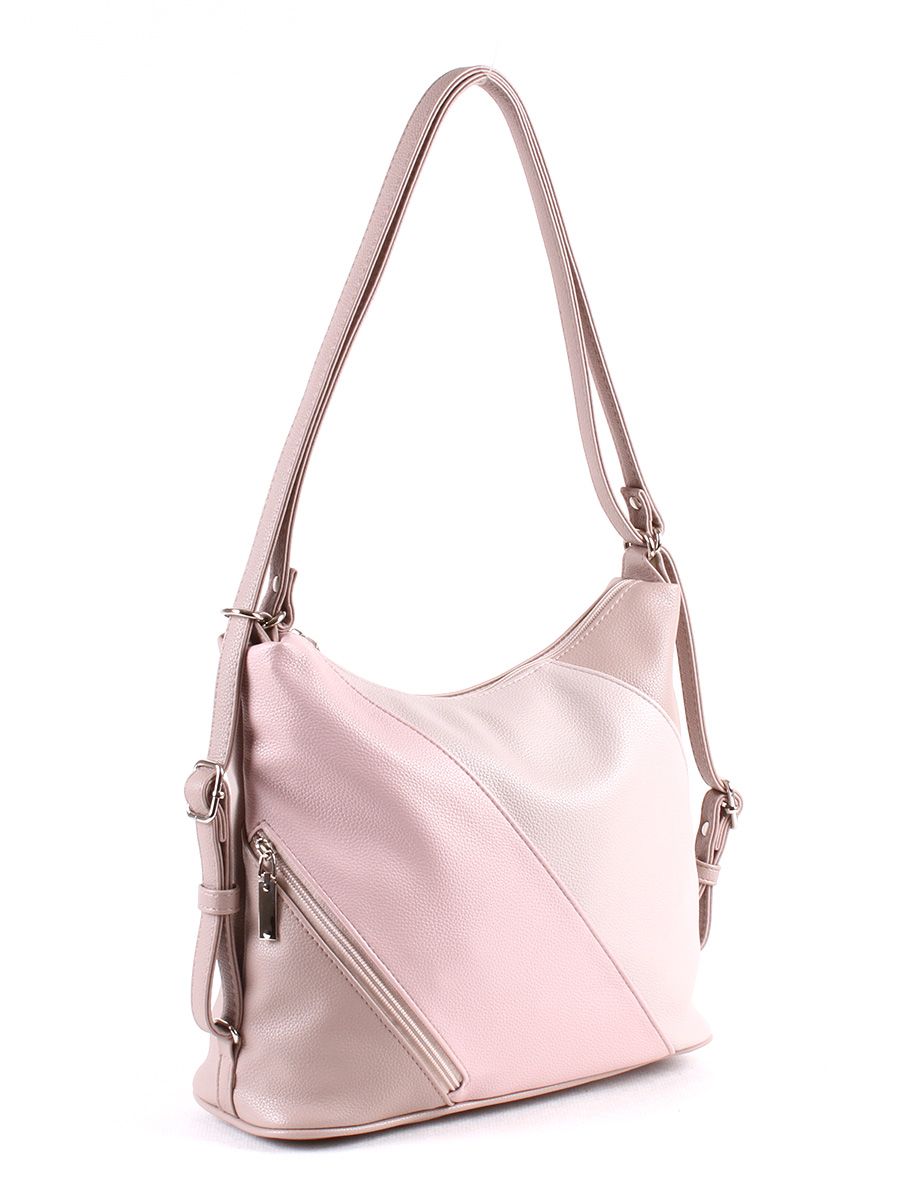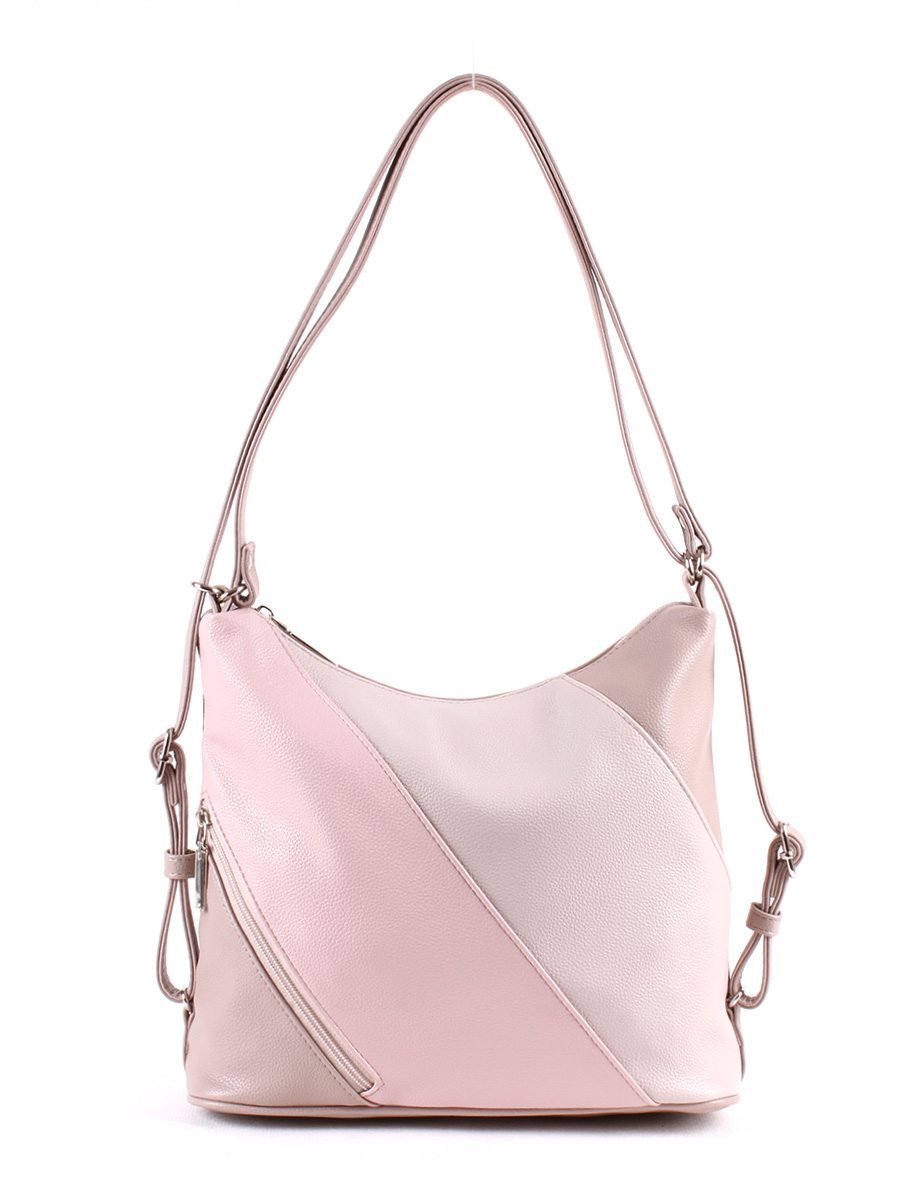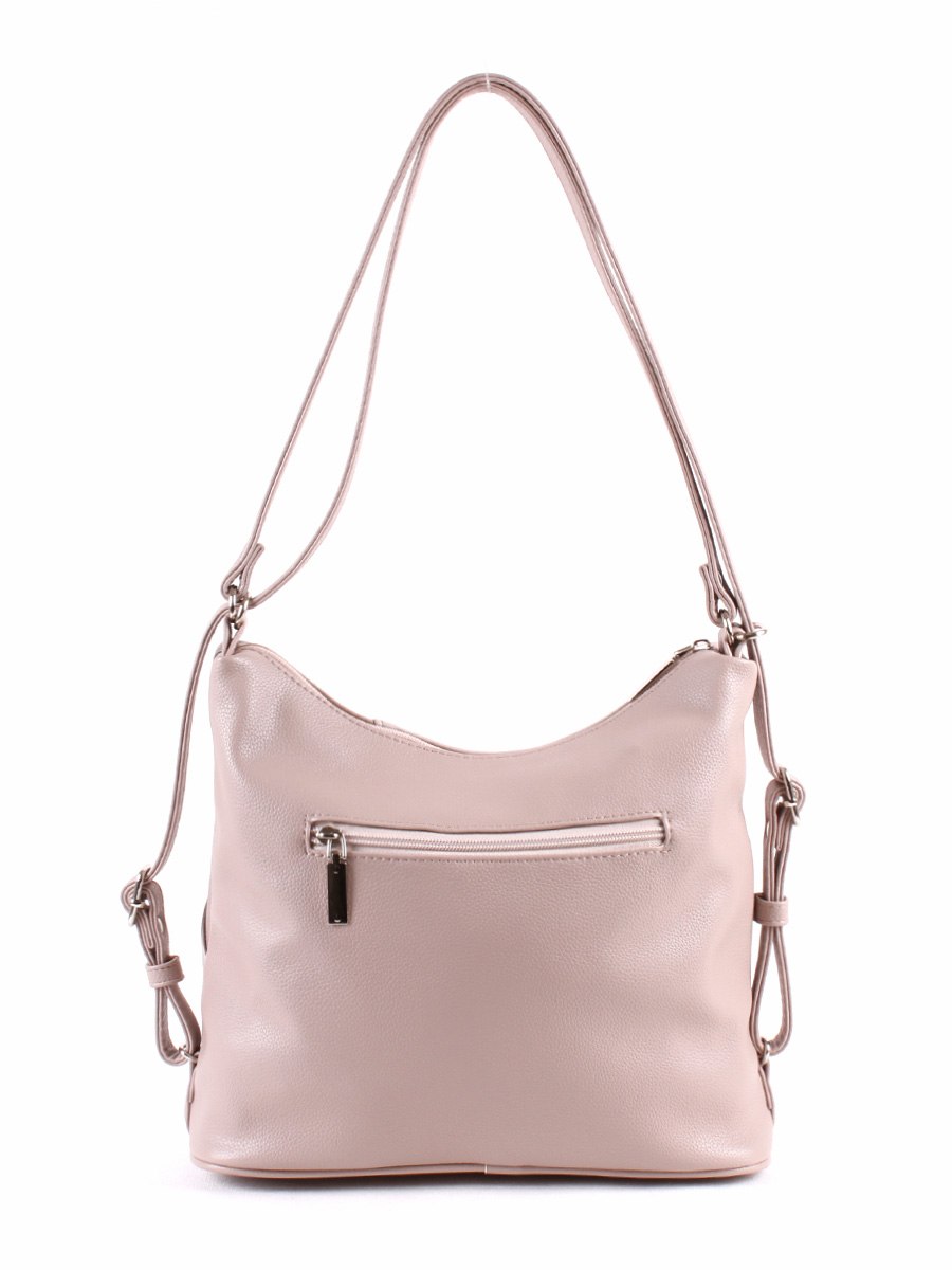 Женская мягкая сумка-трансформер квадратного формата с одним отделением на молнии. На передней и задней стенках - карманы на молнии. Внутри - открытый карман и карман на молнии. Ручки регулируются. Можно носить как сумку на плече (максимальная высота ручки 34 см) или как рюкзак.