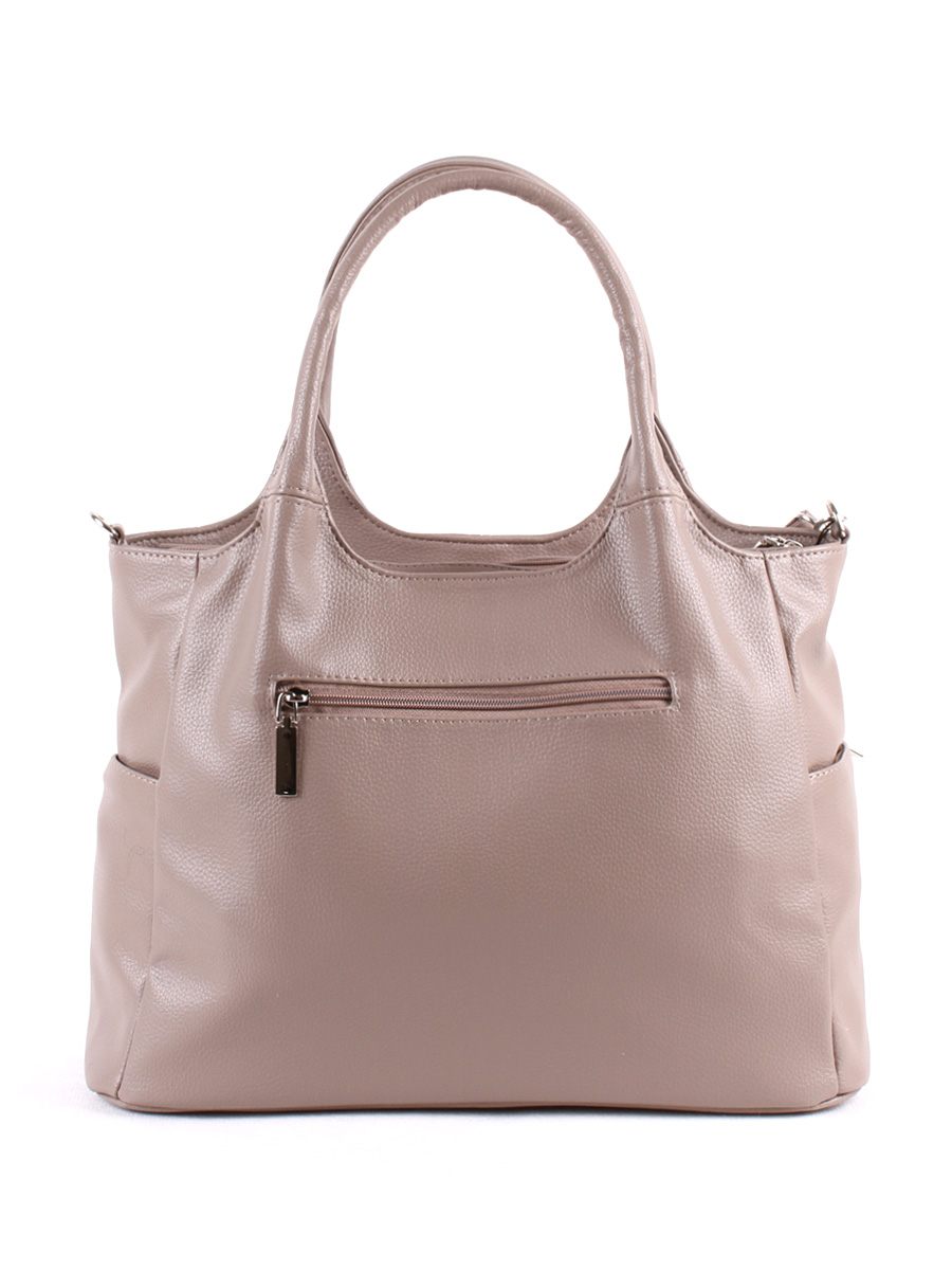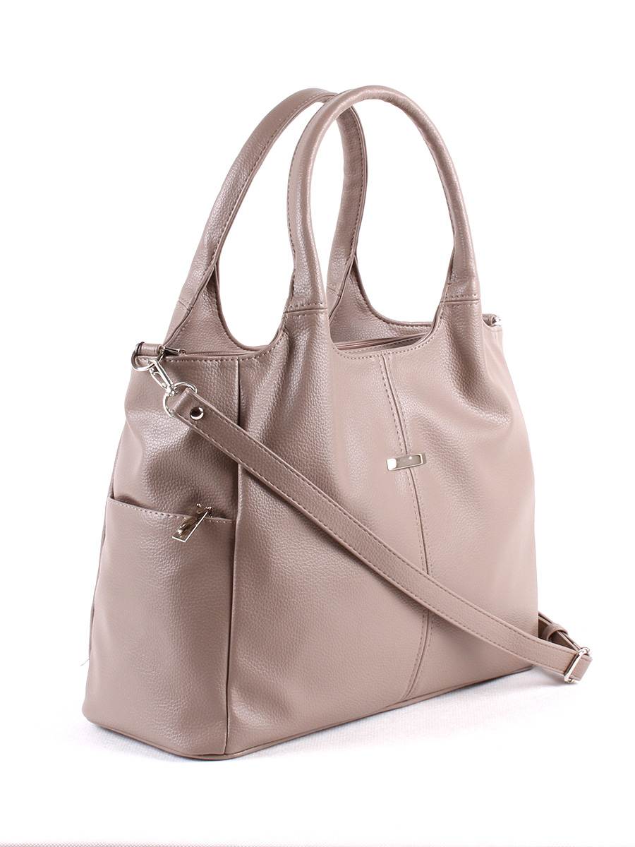 Сумка женская с тремя отделениям на молнии. По бокам и на задней стенке - карман на молнии. Внутри среднего отделения - открытый карман для сотового и карман на молнии. Высота ручек - 18 см. Регулируемый съемный ремень.