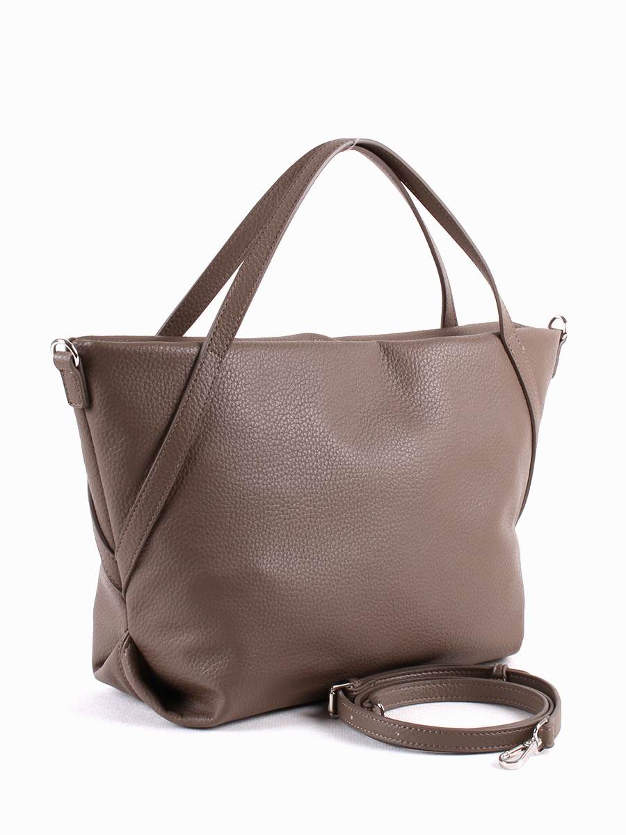 Мягкая женская сумка с одним отделением на молнии. Вмещает формат А4. На задней стенке - карман на молнии. Внутри - два открытых кармана и карман на молнии. Две ручки высотой 13 см. Максимальная длина съемного регулируемого ремня 122 см.