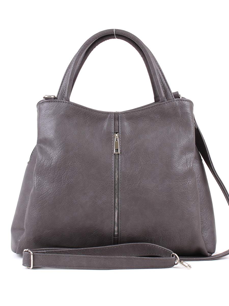 Сумка женская с тремя отделениями на молнии. На передней стенке - вертикальный, на задней - горизонтальный карман на молнии. Внутри среднего отделения - два открытых кармана и карман на молнии. Высота ручек - 16 см. Максимальная длина съемного регулируемого ремня - 125 см.