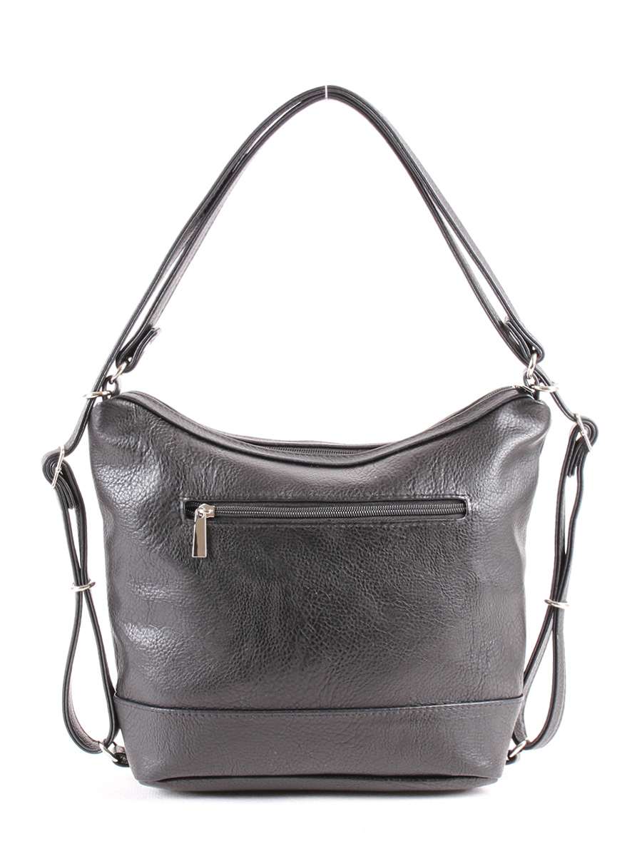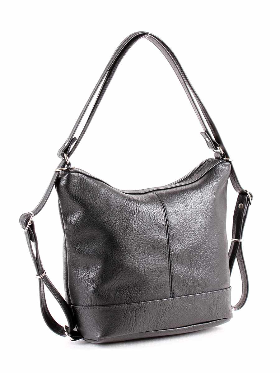 Женская сумка-рюкзак среднего формата. На задней стенке - карман на молнии. Внутри - карман-перегородка на молнии, два открытых кармана и карман на молнии для документов. Максимальная высота несъемных регулируемых ручек при ношении на плече - 33 см.