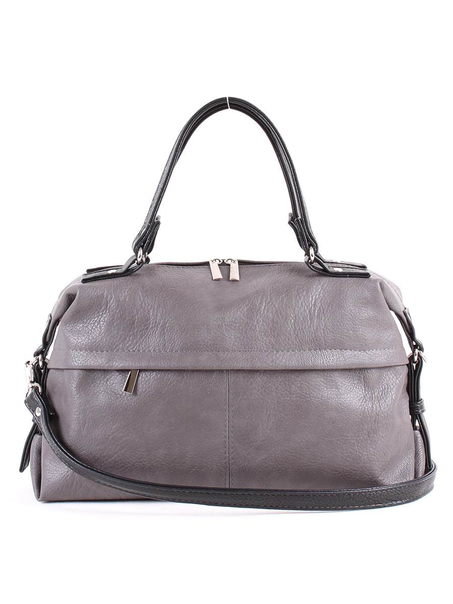 Сумка женская с одним отделением на молнии. На передней и задней стенках - карманы на молнии. Внутри - карман-перегородка на молнии. Два открытых кармашка и карман на молнии для документов. Две ручки высотой 16 см. Максимальная длина съемного регулируемого ремня - 125 см.